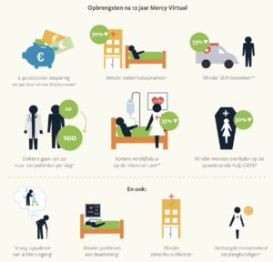 Met veel passie presenteert Dr. Randall Moore, voormalig CEO van Mercy Virtual, de inspirerende voorbeeldcase. Mercy Virtual is onderdeel van Mercy Health, een ziekenhuiscluster dat al bijna 200 jaar bestaat en vandaag de dag zijn er 44 ziekenhuizen verspreid over vijf staten aangesloten. In 2006 introduceerde Mercy Health de virtual ICU, een virtuele oplossing voor intensive-careafdelingen en in 2015 opende het Mercy Virtual om het proces van samenwerking, innovatie en impact ten behoeve van de quadruple aim te versnellen. Mercy Virtual heeft ‘zorg op afstand’ naar een nieuw niveau getild. Het is het eerste Amerikaanse ziekenhuis dat zich volledig focust op virtuele zorg. In het inmiddels onafhankelijke centrum werken 330 medisch professionals op afstand van de patiënt door middel van technologie. Zij waken over de gezondheid van patiënten in 38 ziekenhuizen en in zeven staten bij mensen thuis. Mercy Virtual levert zorg ver buiten de muren van het ziekenhuis op verschillende manieren. De resultaten tot nu toe zijn verbluffend!